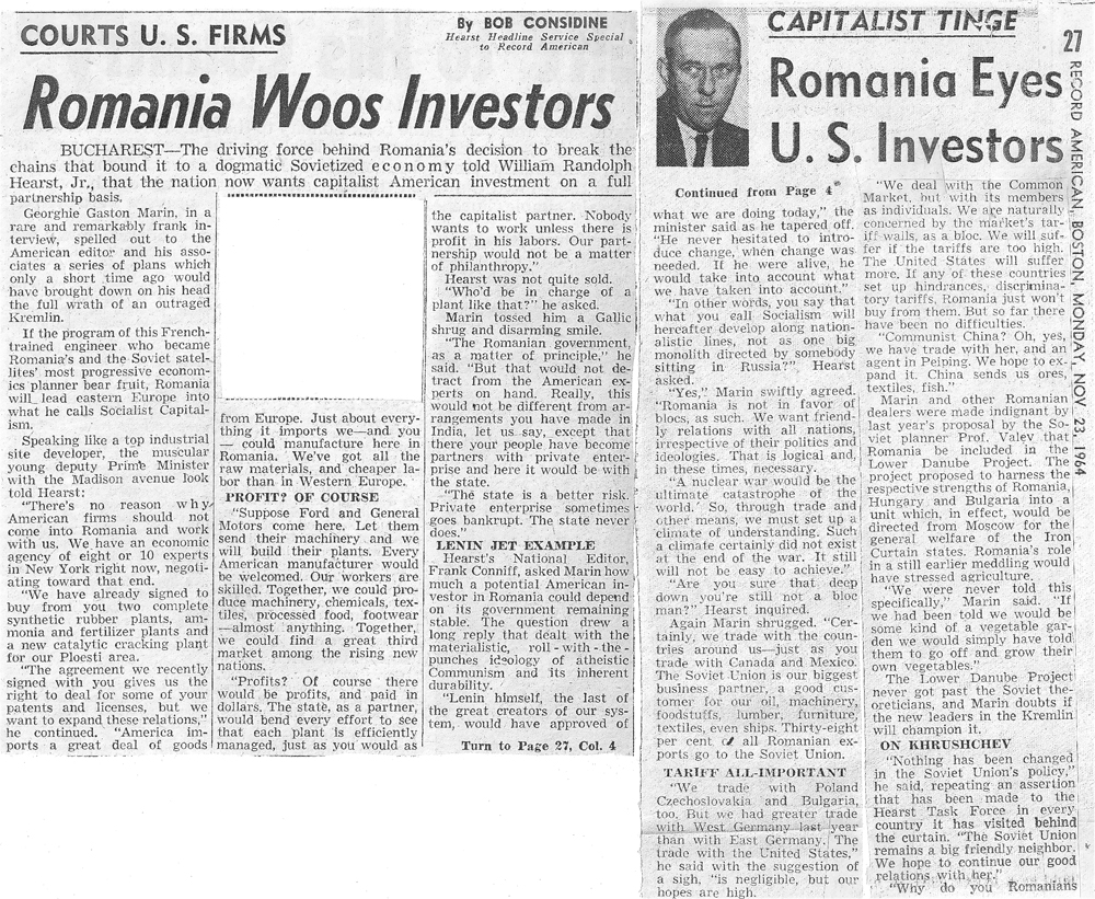 US Opinions about Romania (1964-1965) - Record American (Boston)