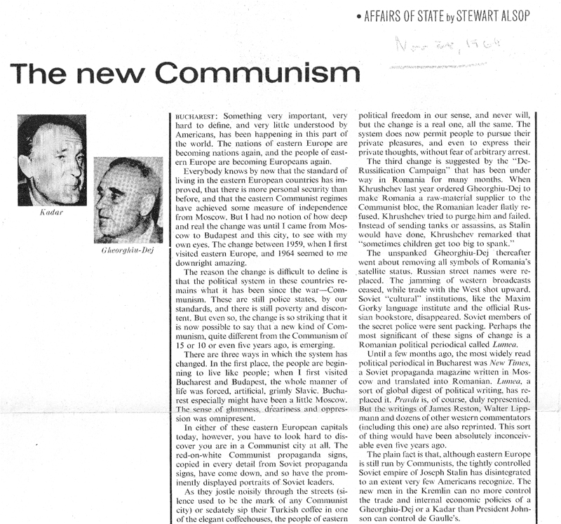 US Opinions about Romania (1964-1965) - Saturday Evening Post