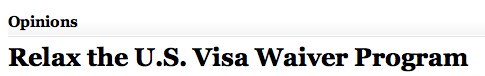 Congress has the opportunity to modernize our visa system, simultaneously improving the U.S. economy, securing U.S. borders and building relationships that matter. The comprehensive immigration bill awaiting House action would accomplish these goals. House members of both parties, many of whom have sponsored VWP reform in the past, should work to enact it. Our country owes its friends better.