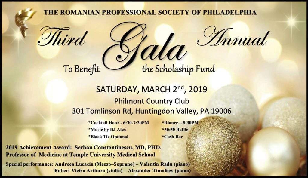 ROMANIAN PROFESSIONAL SOCIETY OF PHILADELPHIA THIRD ANNUAL GALA A Special Evening for all Members and Friends to benefit the Scholarship Fund Saturday, March 2, 2019 Philmont […]